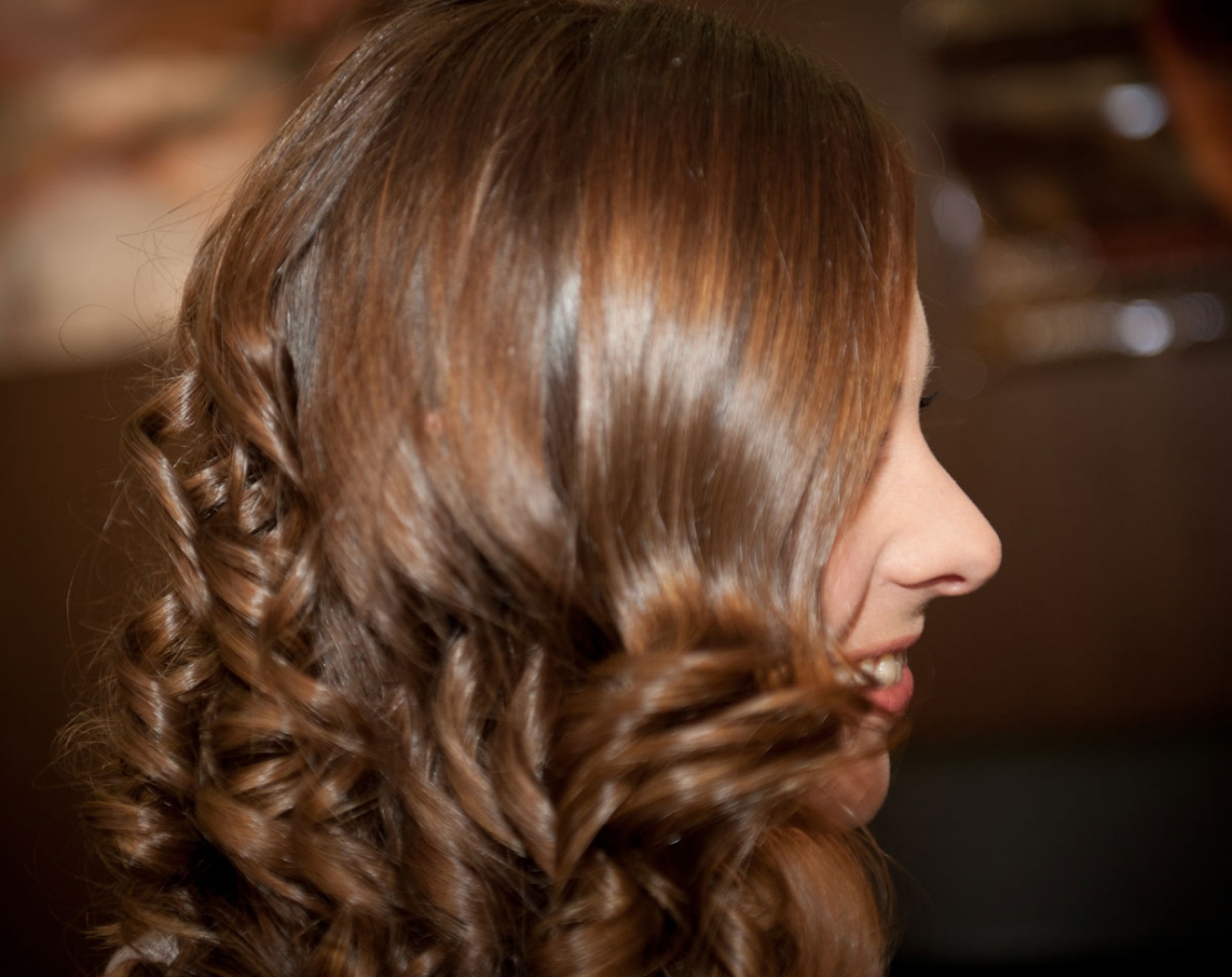 La modelo es Iris Pérez y la dejó así de guapa la peluquera y maquillista Susana Pérez. Para completar el atuendo, lució pendientes de diamantes y perlas del joyero Fernando Gallego.