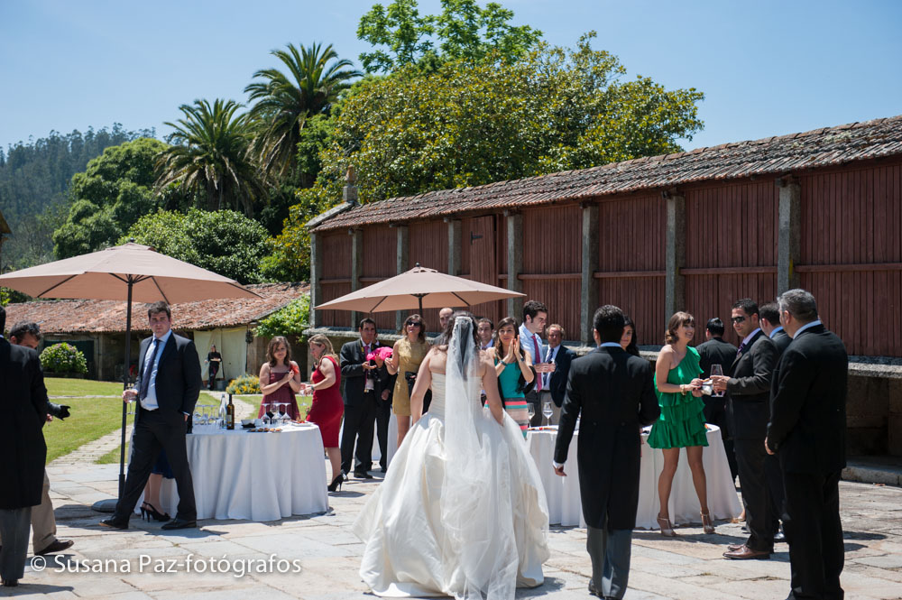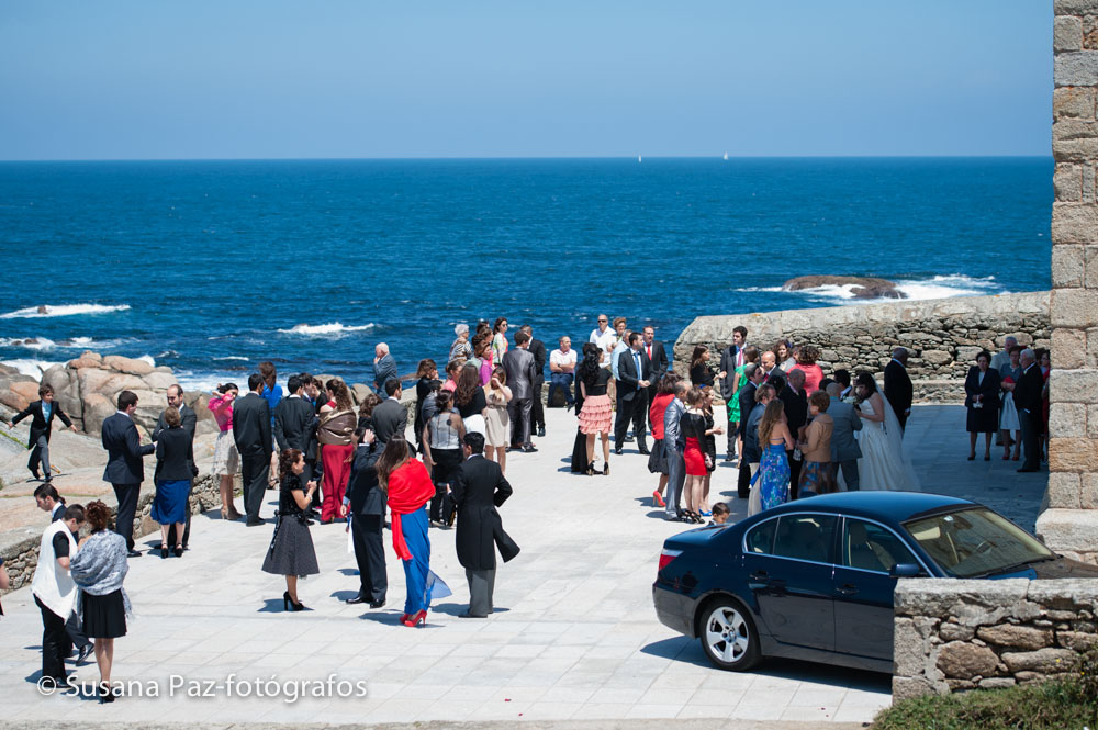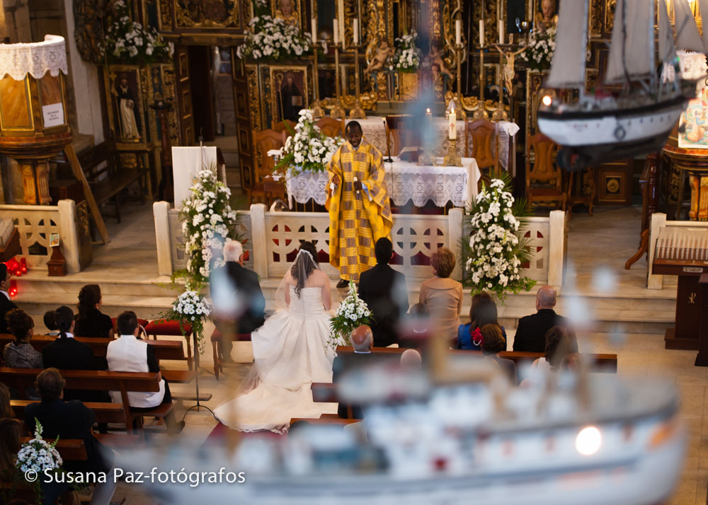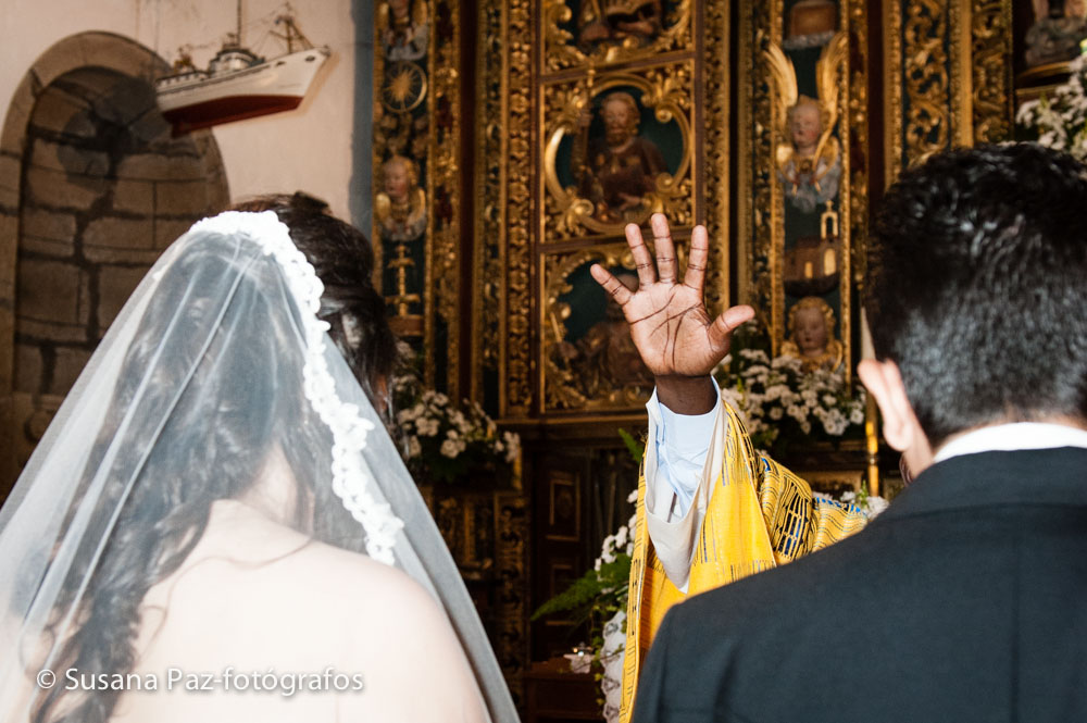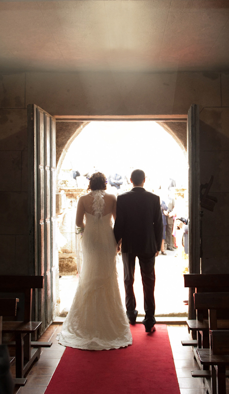 Mario y María viven en Madrid, pero ella es gallega y él es colombiano. Puesto que a María le sobraban razones para casarse en Galicia, y Mario está absolutamente enamorado de su mujer, decidieron hacerlo tal y como la novia lo quizo. La misma María planificó cada detalle -no en vano se dedica a organizar eventos- y el resultado fue realmente expectacular. Como se quedó prendada de la Iglesia de la Virgen de la Barca en Muxía, apostó por celebrar allí la ceremonia; y aunque tuvimos que dar mucha rueda para llegar después al Pazo de Cores, donde les esperaban los aperitivos y el banquete, su elección fue todo un acierto. Ellos querían un lugar pequeño, discreto y en donde solo hicieran una boda por vez, y en el Pazo de Cores encontraron el lugar perfecto. De más está decir que ha sido una de las bodas más movidas y divertidas que hemos fotografiado, que los novios y los invitados cantaron y bailaron hasta quedar rendidos, y que los fotógrafos no podíamos despegar el dedo del obturador ante aquellas escenas tan llenas de alegría y amor.