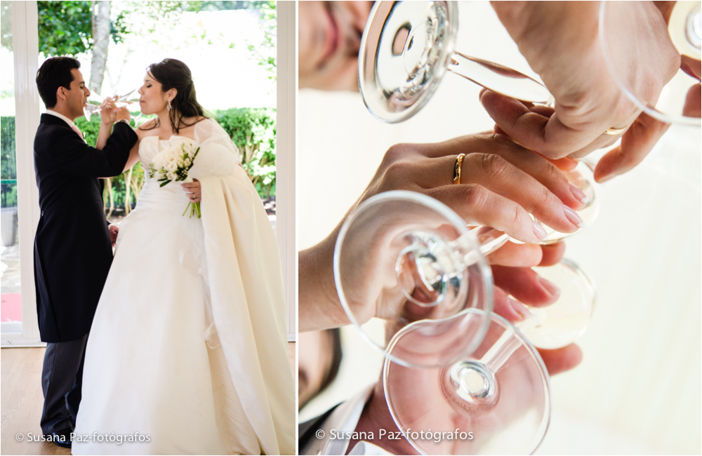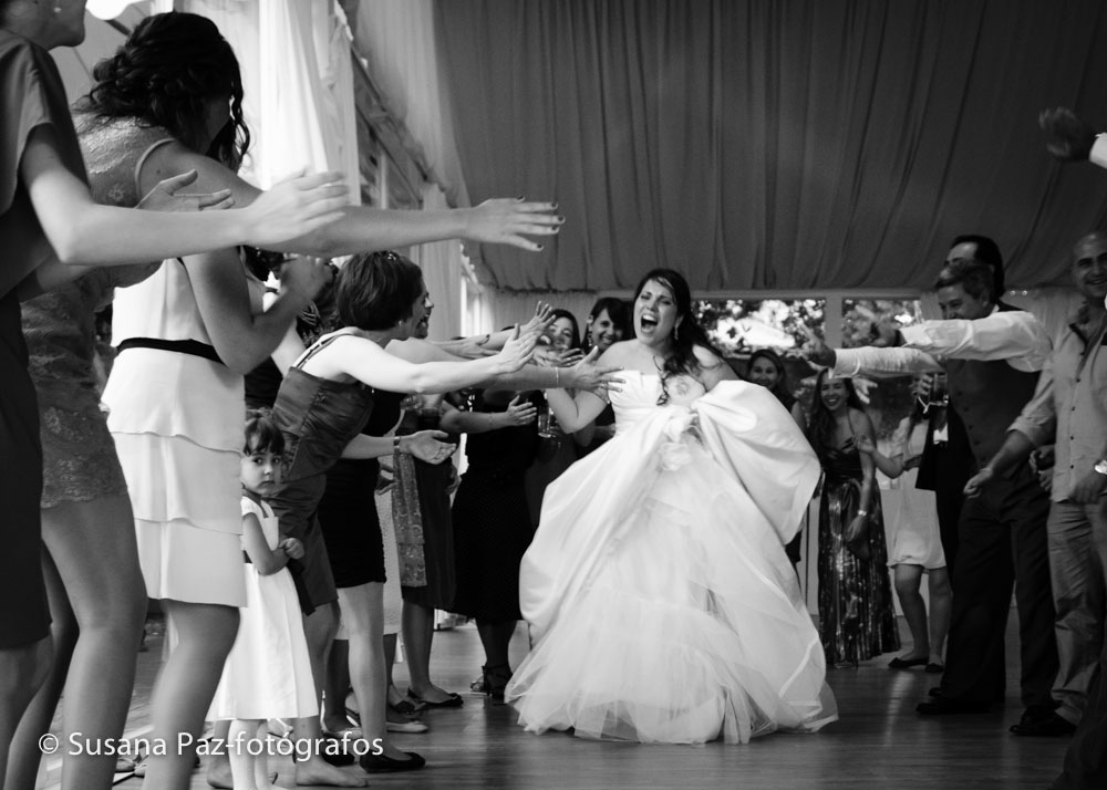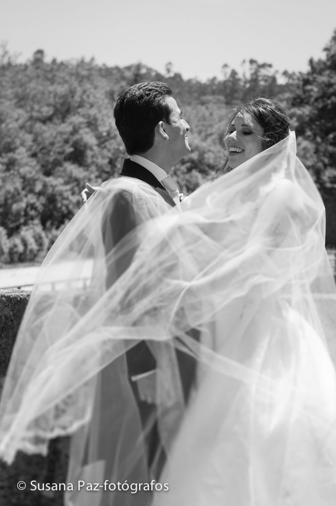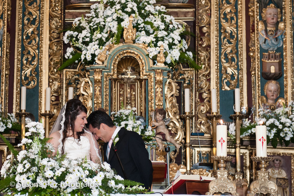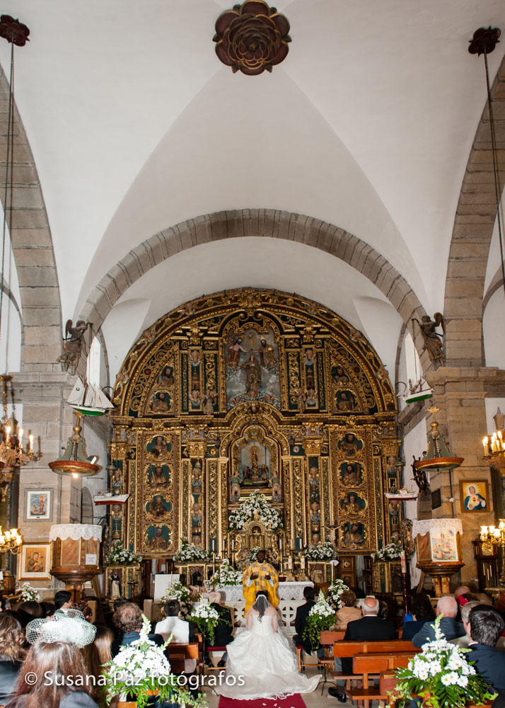 Mario y María viven en Madrid, pero ella es gallega y él es colombiano. Puesto que a María le sobraban razones para casarse en Galicia, y Mario está absolutamente enamorado de su mujer, decidieron hacerlo tal y como la novia lo quizo. La misma María planificó cada detalle -no en vano se dedica a organizar eventos- y el resultado fue realmente expectacular. Como se quedó prendada de la Iglesia de la Virgen de la Barca en Muxía, apostó por celebrar allí la ceremonia; y aunque tuvimos que dar mucha rueda para llegar después al Pazo de Cores, donde les esperaban los aperitivos y el banquete, su elección fue todo un acierto. Ellos querían un lugar pequeño, discreto y en donde solo hicieran una boda por vez, y en el Pazo de Cores encontraron el lugar perfecto. De más está decir que ha sido una de las bodas más movidas y divertidas que hemos fotografiado, que los novios y los invitados cantaron y bailaron hasta quedar rendidos, y que los fotógrafos no podíamos despegar el dedo del obturador ante aquellas escenas tan llenas de alegría y amor.